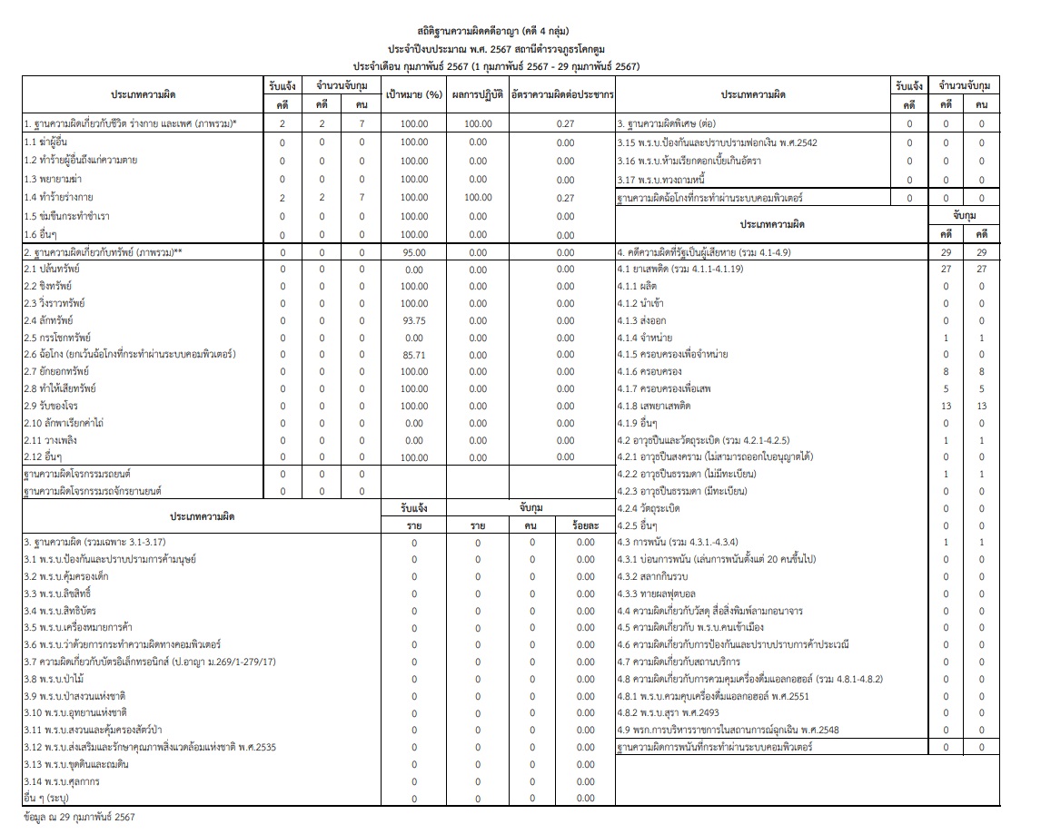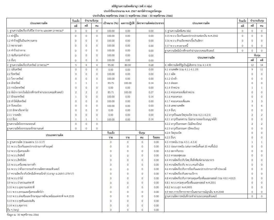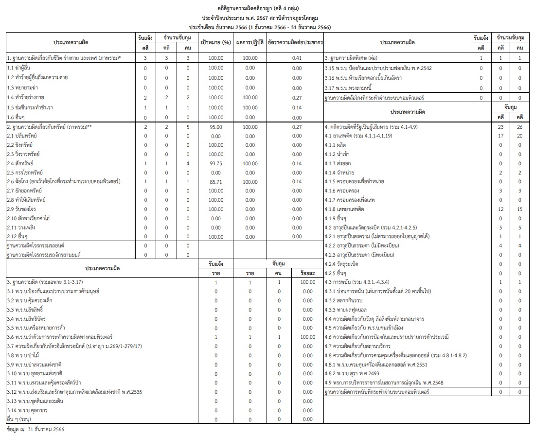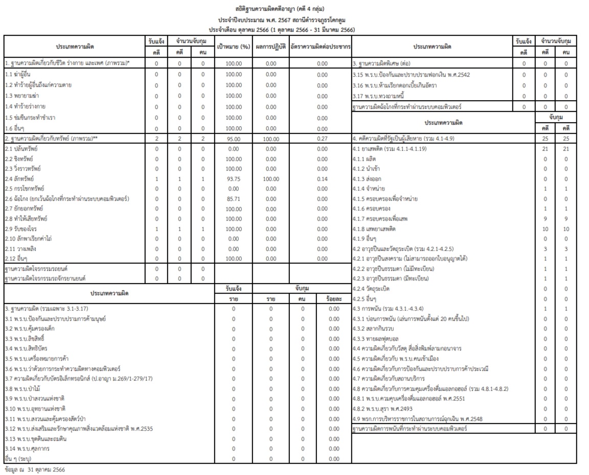 ข้อมูลผลการดำเนินงานในเชิงสถิติด้านคดีอาญา 4 กลุ่มตามระบบ CRIMES