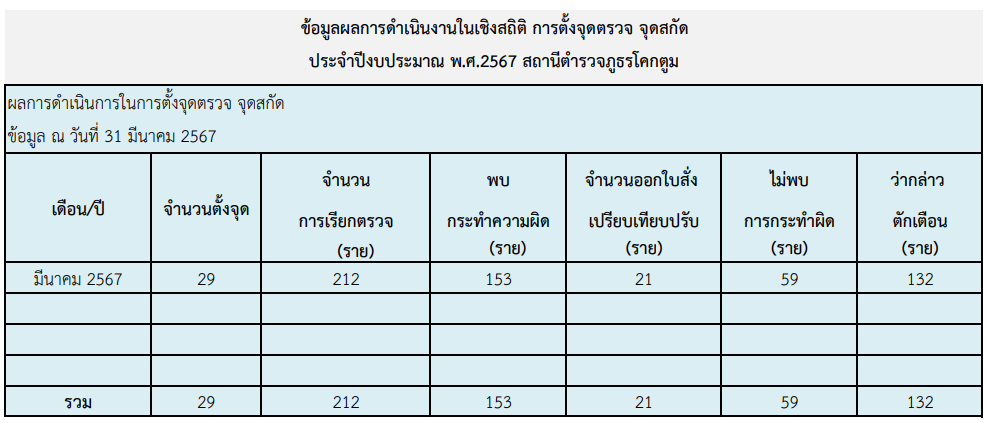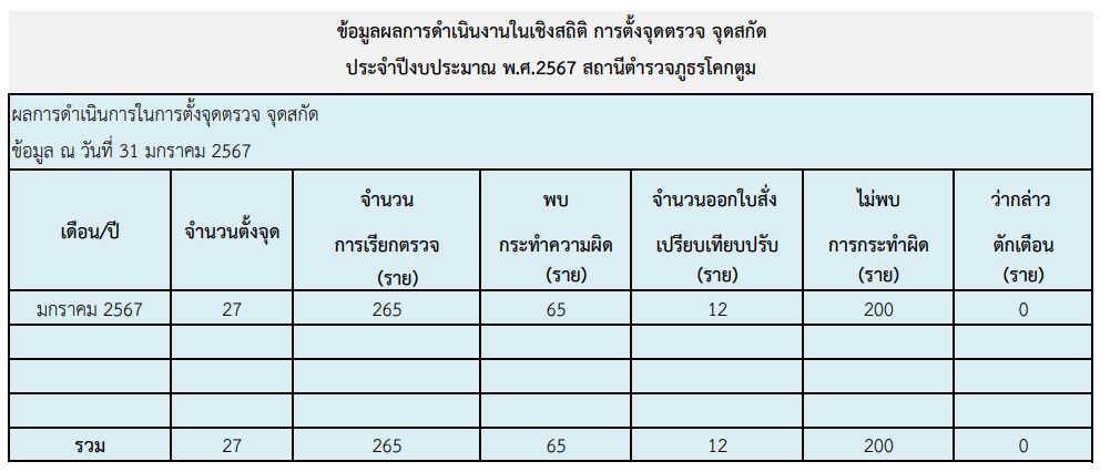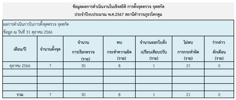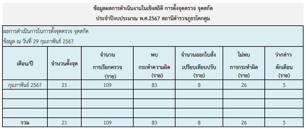 ข้อมูลผลการดำเนินงานเชิงสถิติในการตั้งจุดตรวจ จุดสกัด